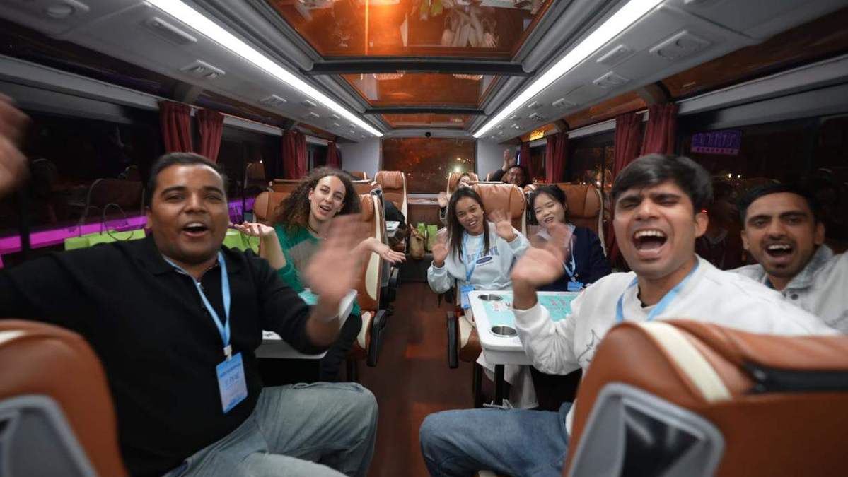 當晚,采訪團興致勃勃地體驗了合肥公交音樂巴士的創新業態。當五彩斑斕的雙層觀光巴士行駛在夜幕下的城市道路,他們坐在巴士的上層,或欣賞城市霓虹,或引吭高歌,一會兒英語,一會兒俄語,巴基斯坦的Syed Wajahat Ali Bukhari更是以一首《童話》一展中文唱功。這樣的城市文旅新玩法讓外籍友人們直呼“沒想到”。
